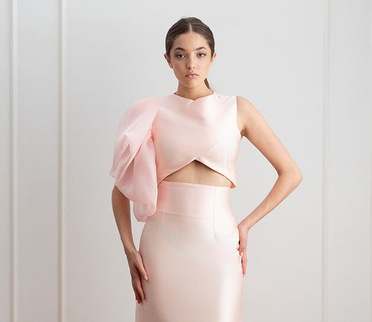 Draped off-white crop top