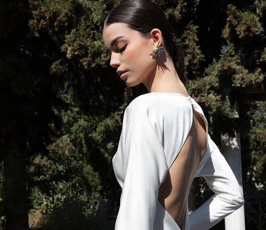 Asymmetrical evening pearl dress