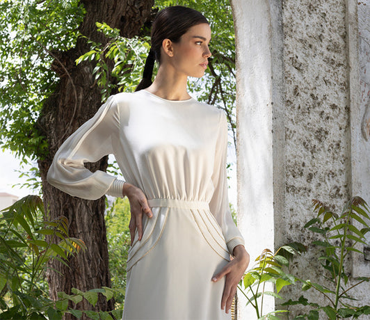 Asymmetrical midi white dress