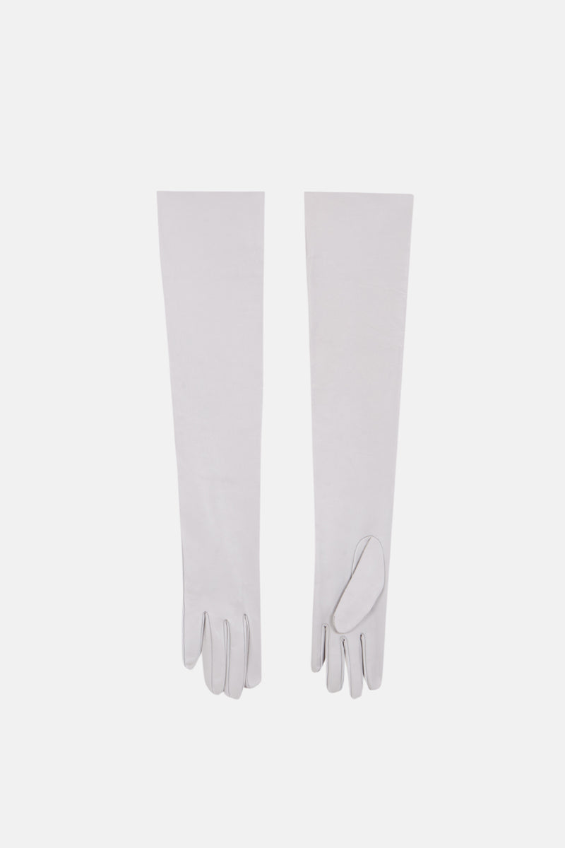 Guantes largos de cuero de novia en piel de cordero. Confeccionados a mano en color gris perla.